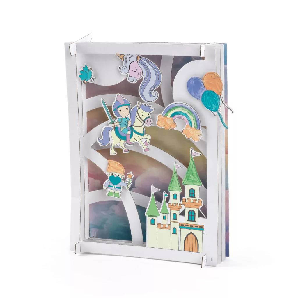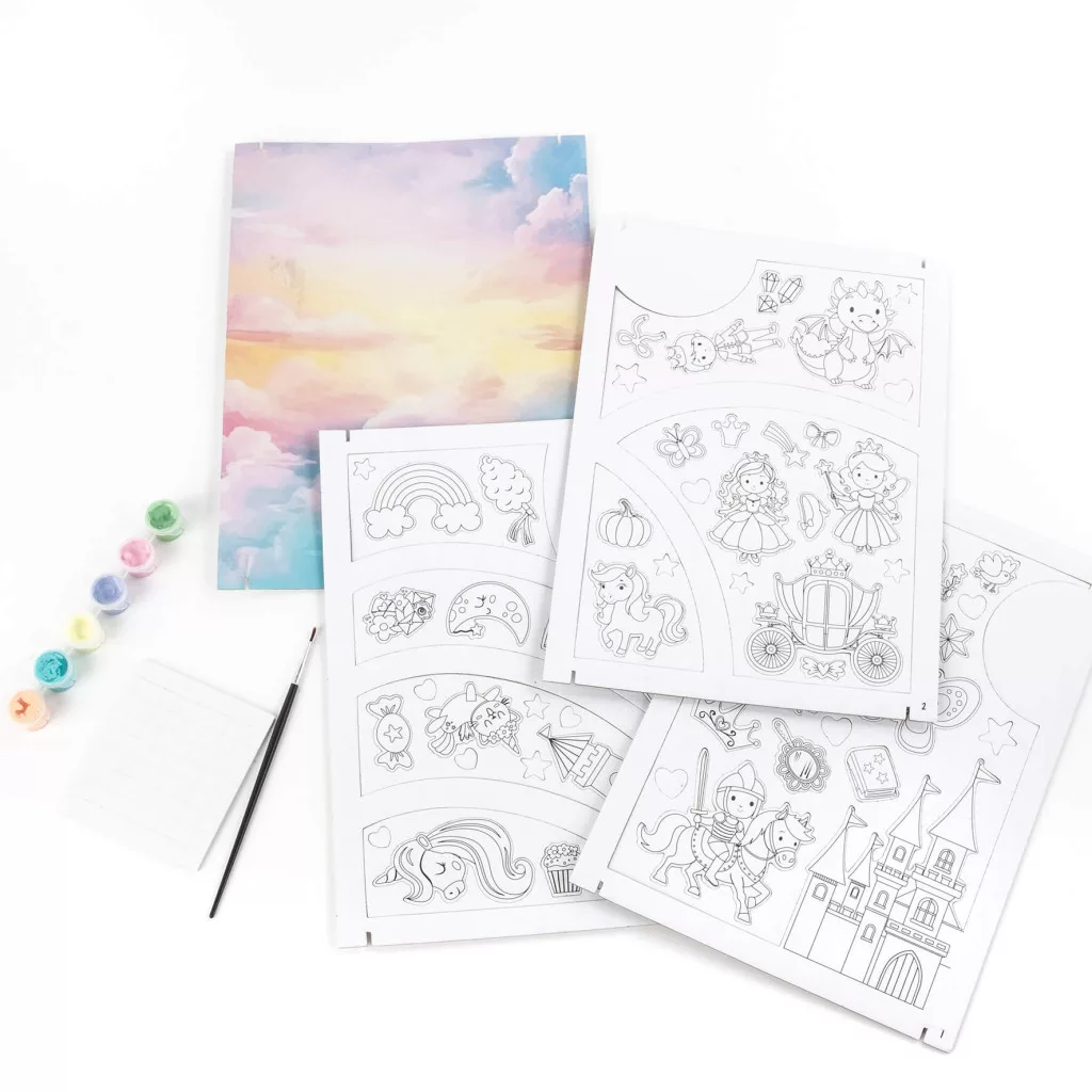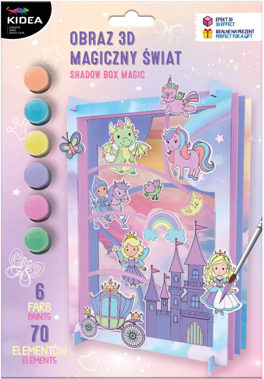 Alkoss egy varázslatos 3D képet a szett segítségével. A készlet tartalmazza a hátlapot, a karton figurákat, kétoldalú ragasztót, 6 különböző színű festéket és egy ecsetet.
