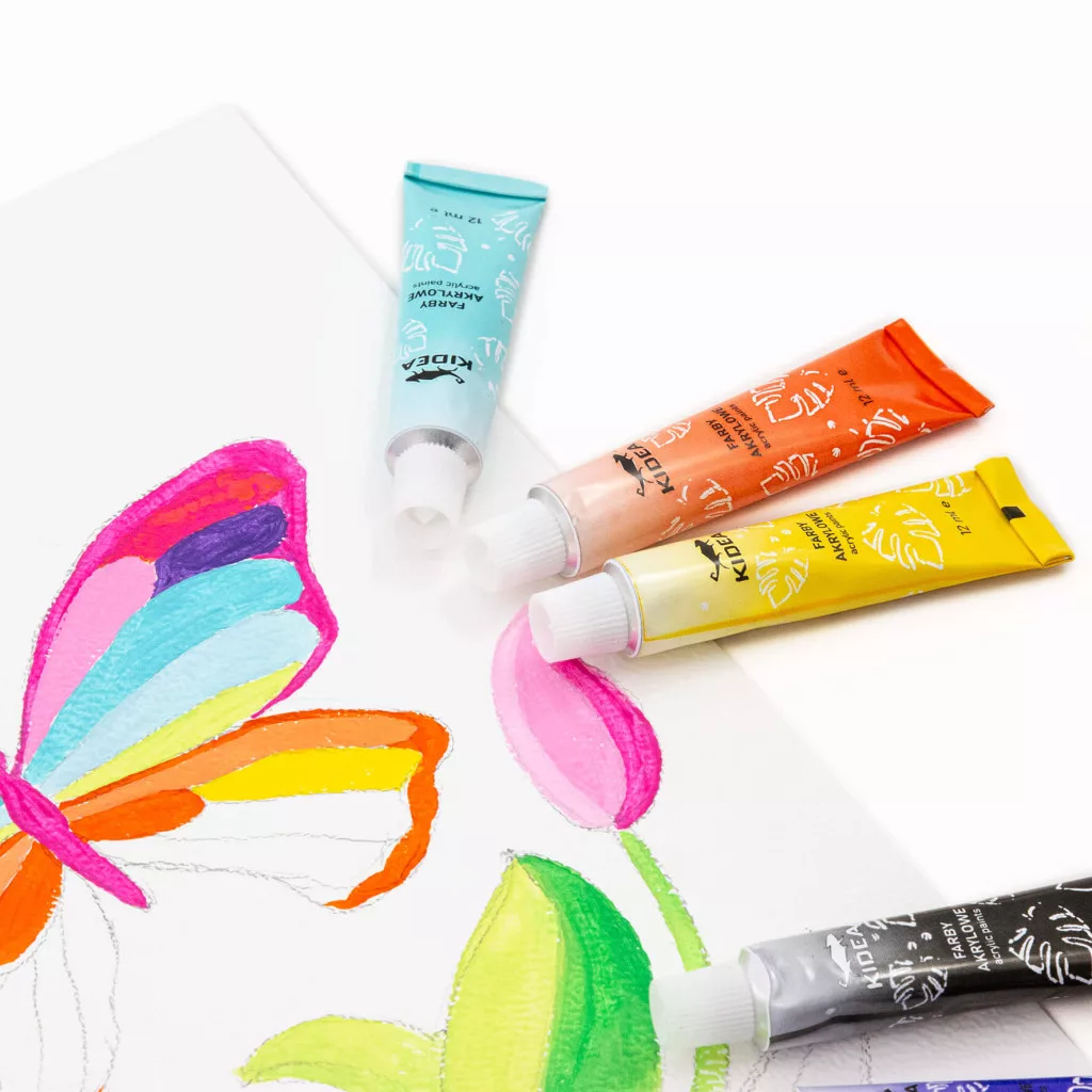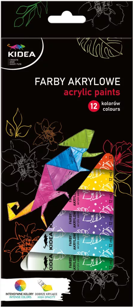 Akrilfesték készlet, 12 db-os, 12x12ml, alap színek, Kidea