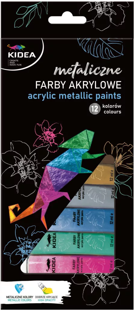 Akrilfesték készlet, 12 db-os, 12x12ml, metál, Kidea