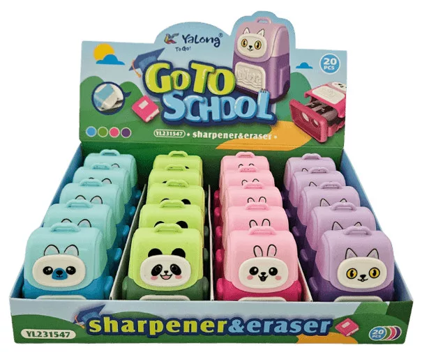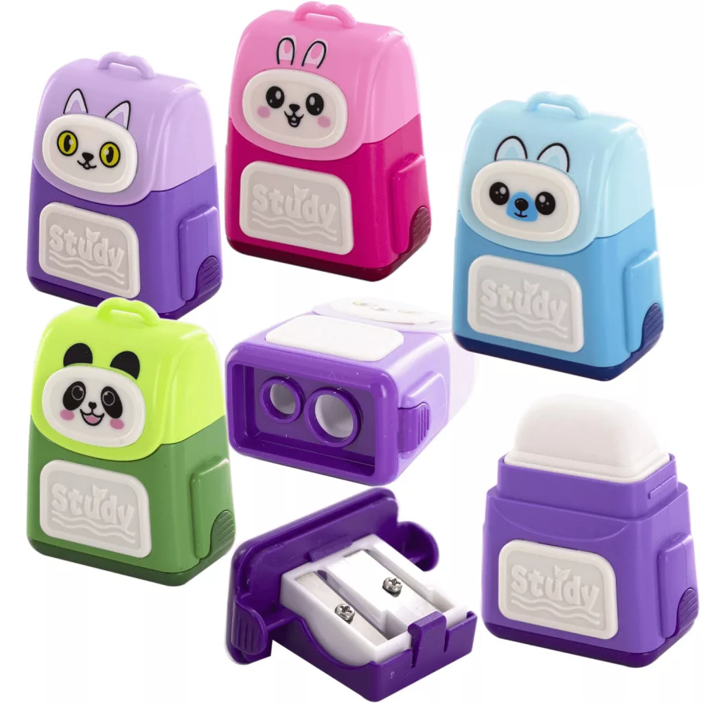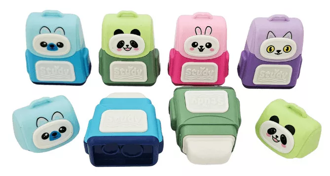 Állatmintás, táska formájú radír és hegyező, 4 féle változat. Méret: 5x4,5x2,5cm. Az ár egy darabra vonatkozik, nem biztos, hogy mindegyik van készleten.