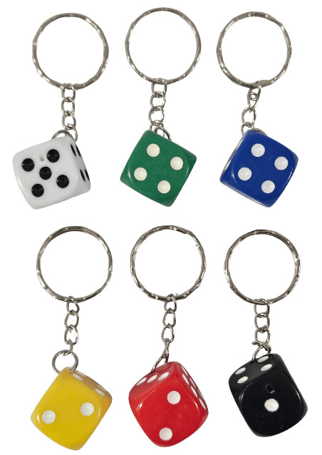 Dobókocka kulcstartó, műanyag, 1,5x1,5cm, többféle. Az ár 1 db-ra vonatkozik, nem biztos, hogy mindegyik van raktáron.