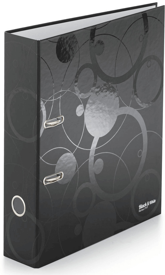 Emelőkaros iratrendező, A/4, 70mm, black&white, fekete. Méret: 285x320x70mm. Anyaga: laminált karton