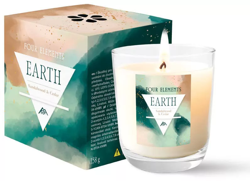 A Föld elem gyertya a biztonságot, az egyensúlyt és a természethez való kapcsolódást szimbolizálja. A szantálfa és a cédrus meleg illata meghitt légkört teremt, támogatja a koncentrációt, és hozzájárul a mély ellazulás érzéséhez.