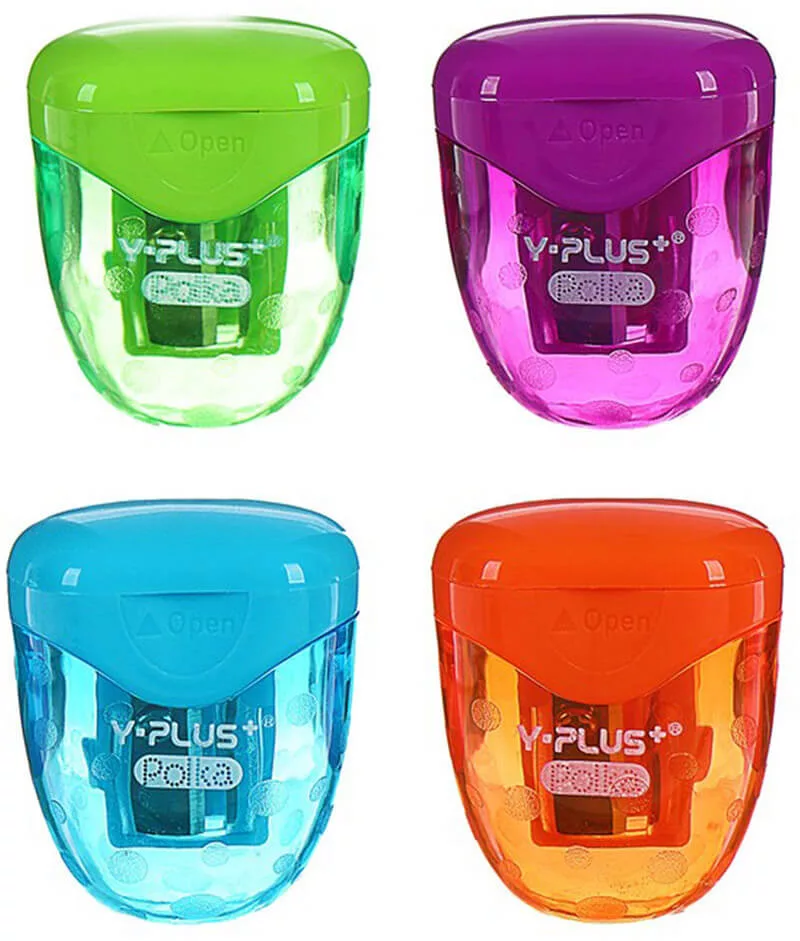 Hegyező, tartályos, 2 lyukú, Y-Plus Polka. Méret: 59x48x36 mm. Az ár 1 db-ra vonatkozik.
