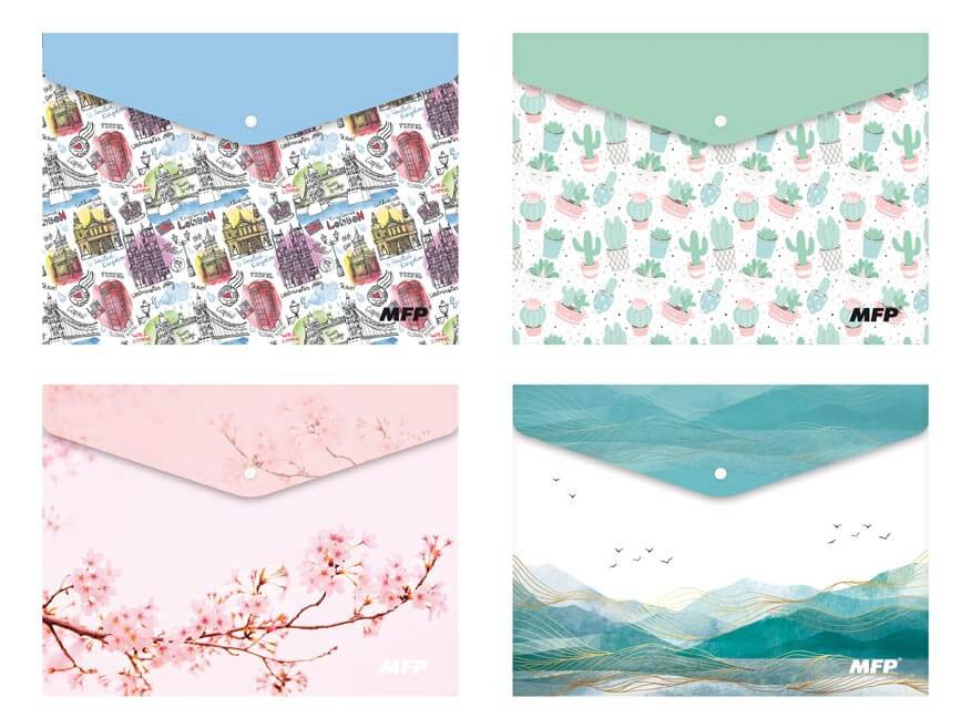 Irattartó tasak A/5, patentos, műanyag, MFP, vegyes minták