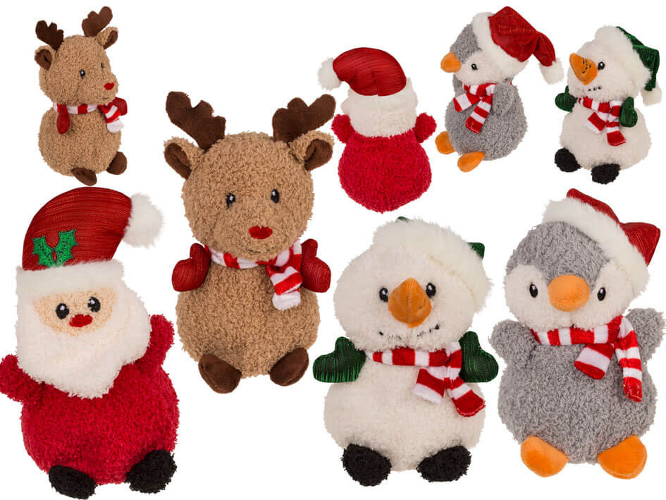 Hozzon egy csipetnyi karácsonyi varázslatot otthonába! A karácsonyi plüssállatok rénszarvas, hóember, pingvin és Mikulás formájában tökéletesek a meleg és vidám hangulat megteremtéséhez. Mindegyik puha, tapintható plüssből készült, amely csak azért könyörög, hogy megölelhesse. Az ünnepi részletekkel - a Mikulás sapkájával, sáljával és szakállával - ezek a kabalák egyedi dekorációvá és imádnivaló játszótárssá válnak.