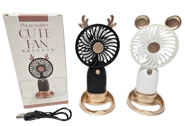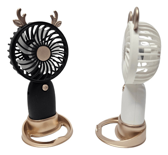 Kézi ventilátor, akkumulátoros, tölthető. USB kábellel tölhető, melyet a doboz tartalmaz.