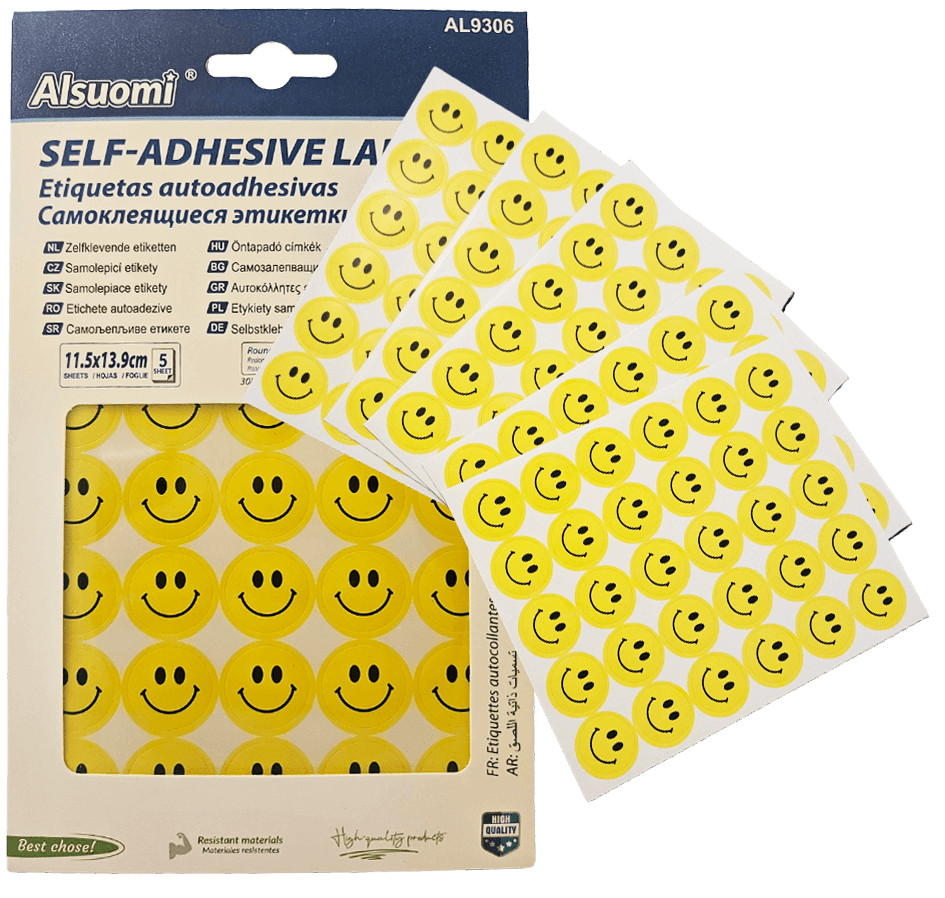Smiley, emoji matrica 11x14cm, 5 ív/csomag, 5x30 smiley matrica