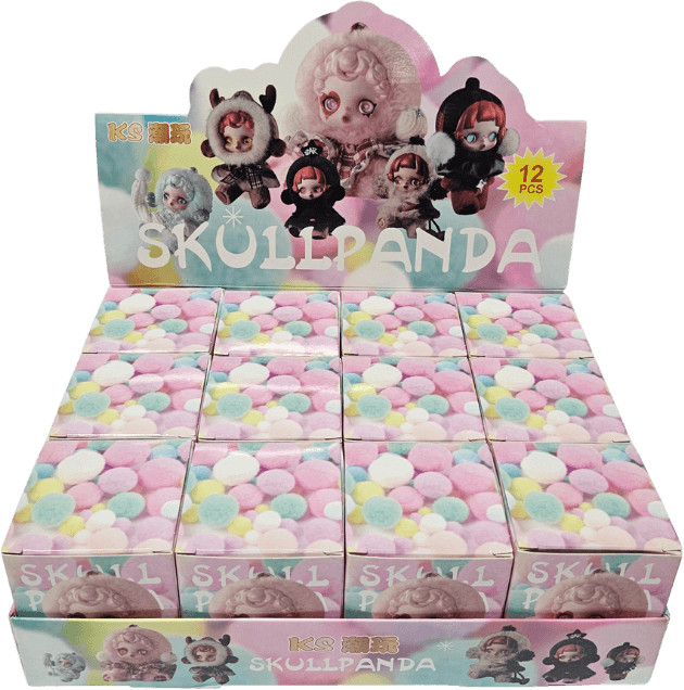 Meglepetés mini plüss plüssfigura, Skullpanda design, akasztóval, kb. 4,5x2,5cm