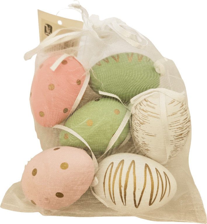 Mintás tojások, 6 db/csomag, 4x6cm-es. Az ár egy csomagra vonatkozik, amely 6 db mintás tojást tartalmaz.