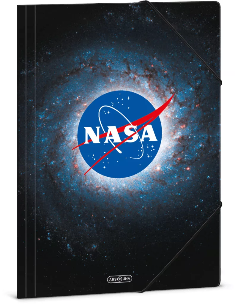 NASA gumis mappa A/4, Ars Una, fekete. A/4 méretű gumis dosszié iratok, füzetek tárolására. 350 gr-os vastag kartonból készült dosszié lekerekített első sarkokkal, színes gumi zárópánttal. Méret: 330mm x 240mm x 5mm