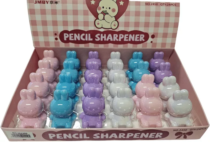 Nyuszi hegyező, 1 lyukú, 5 cm magas, többféle szín. Az ár egy darabra vonatkozik, nem biztos, hogy mindegyik van készleten.