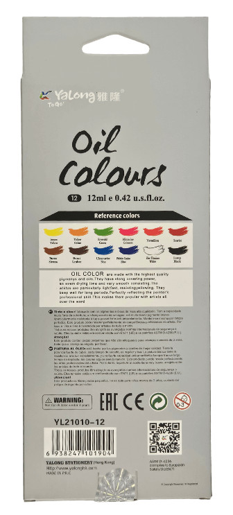 Olajfesték készlet, 12 db-os, 12x12ml, Yalong YL21010.