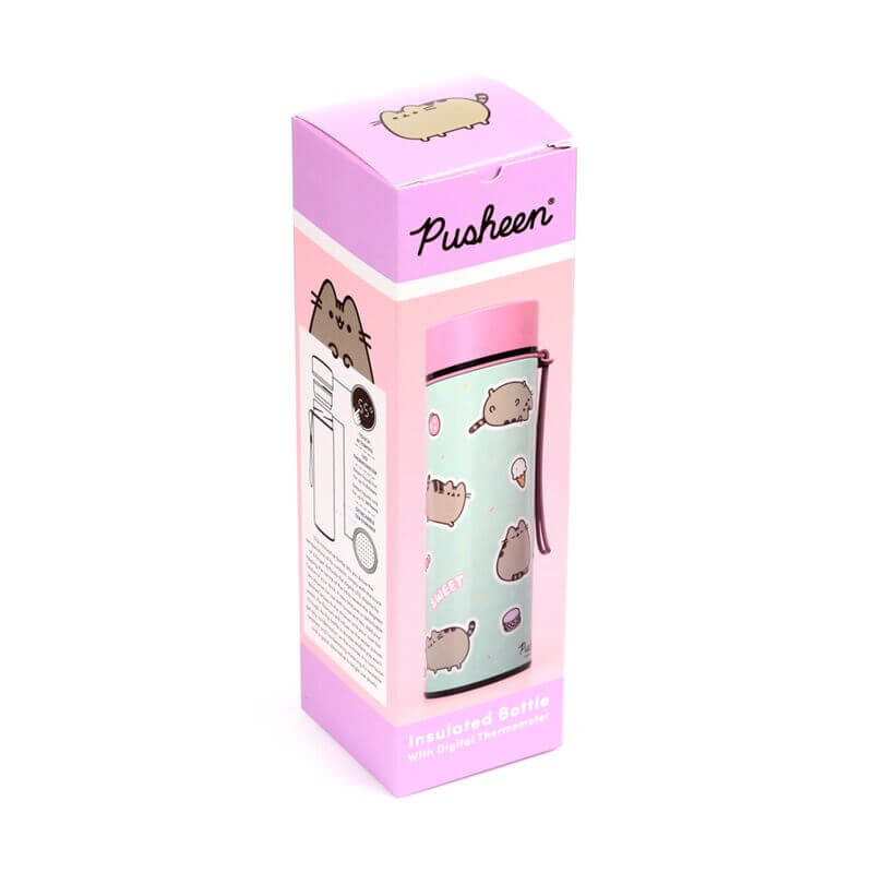 Pusheen cicás rozsdamentes acél thermo palack, digitális hőmérővel, 450 ml, Ínyenc Pusheen macska