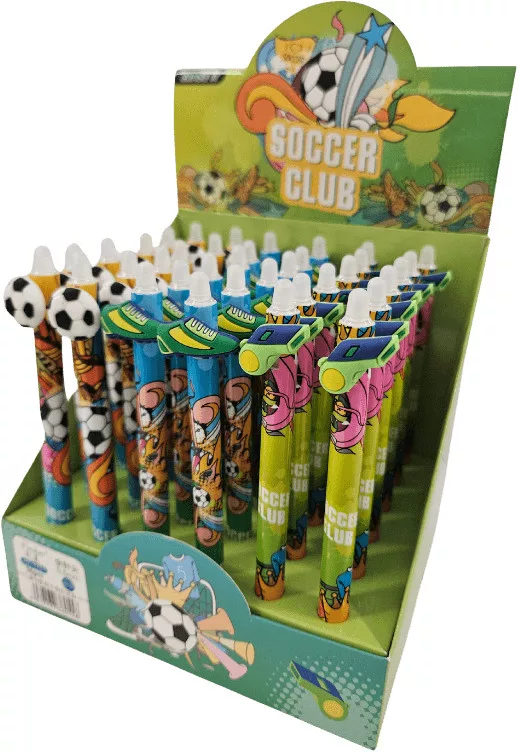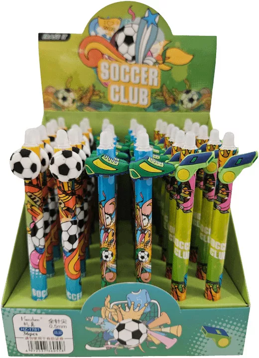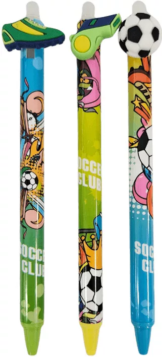 Radírozható zseléstoll, nyomógombos, 0,5mm, focis (HZ-1781). A toll speciális tintája a tollvéggel radírozható, de az írás -18 C alatt újra előhívható. Írásszín: kék. Az ár 1 db-ra vonatkozik, viszonteladók vegyesen kapják.