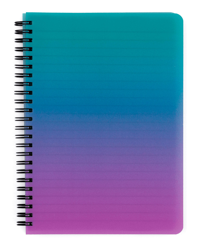 Spirál füzet A/5, vonalas, 60 lapos, műanyag borítóval, OMBRE, türkiz-rózsaszín. Perforált lapok. Méret: 165x215x8mm. Borító anyaga PVC.