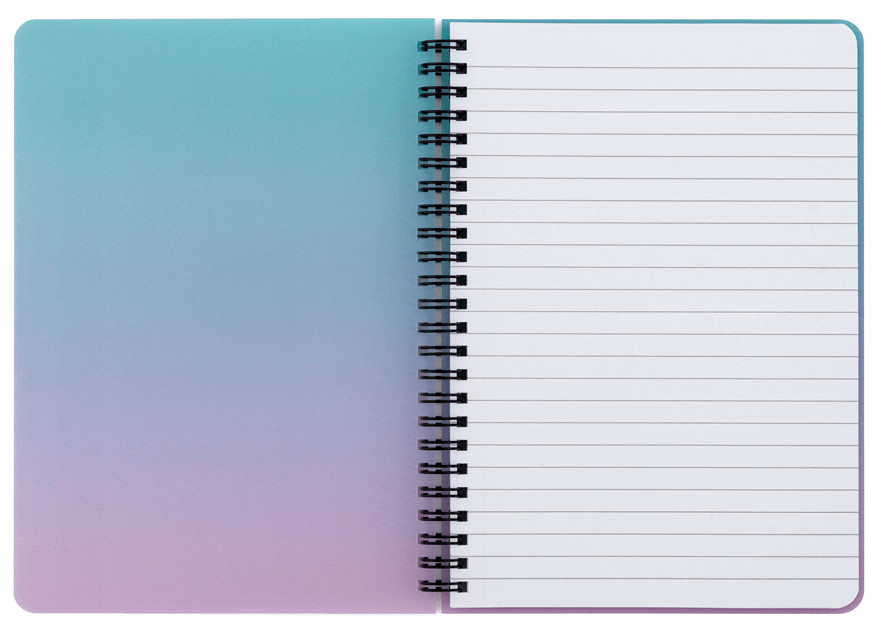 Spirál füzet A/5, vonalas, 60 lapos, műanyag borítóval, OMBRE, türkiz-rózsaszín