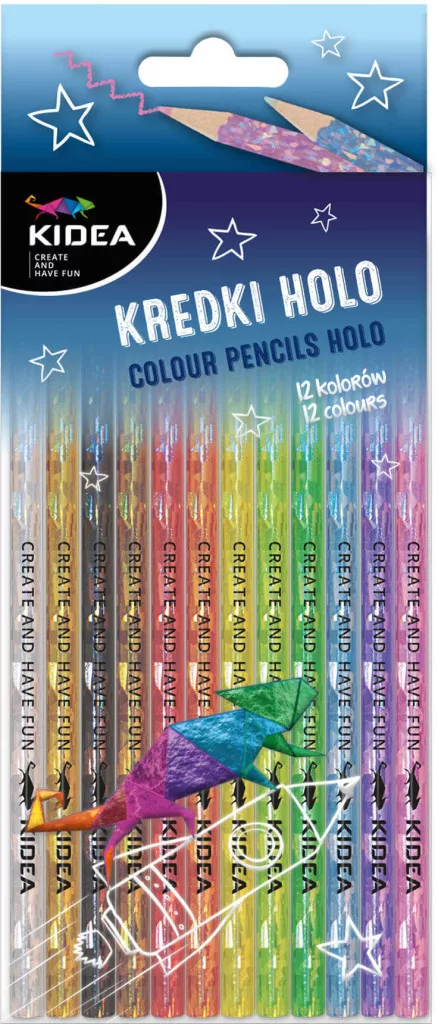 Színes ceruzakészlet, 12 db-os, hologramos test, Kidea