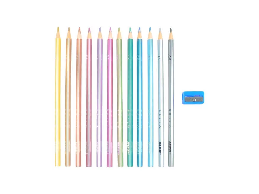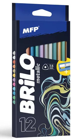 Színes ceruzakészlet 12 db-os, hegyezővel, háromszög test, metál, MFP