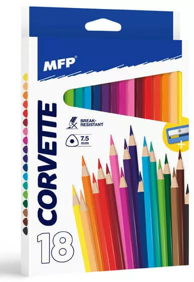 Színes ceruzakészlet 18 db-os, hegyezővel, háromszög test, MFP