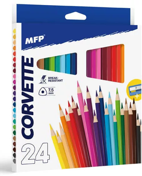 Színes ceruzakészlet 24 db-os, hegyezővel, háromszög test, MFP
