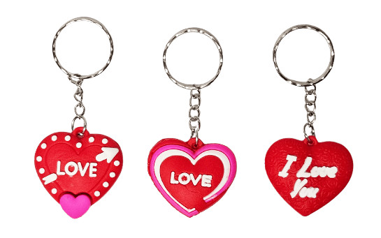 Szivecskés kulcstartó, műanyag, 3,5cm magas, többféle