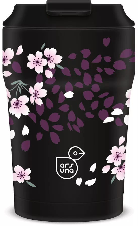 Thermo bögre, duplafalú, 350ml, Ars Una, Sakura, fekete, virágos