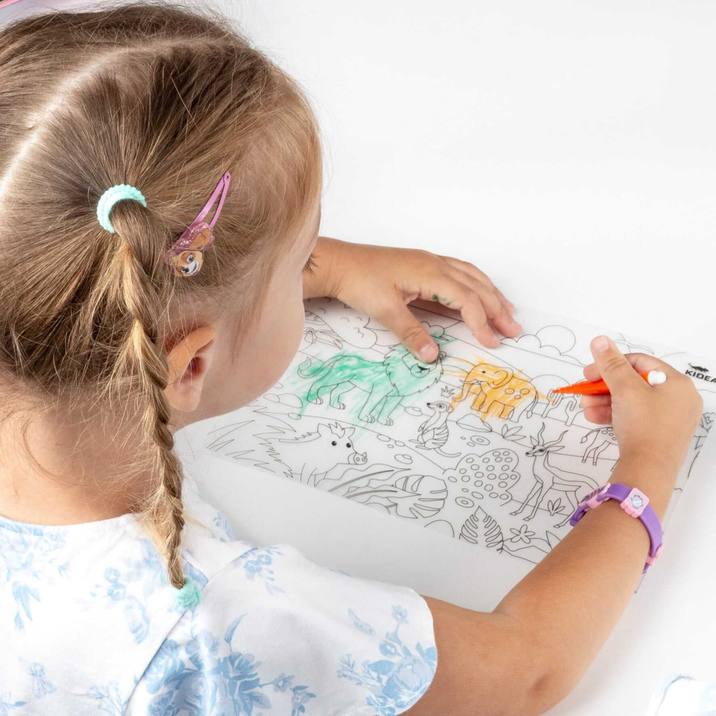 Újrahasználható oktató és színező lapok (4+3 lap) 6 db táblamarkerrel, állatos, Kidea