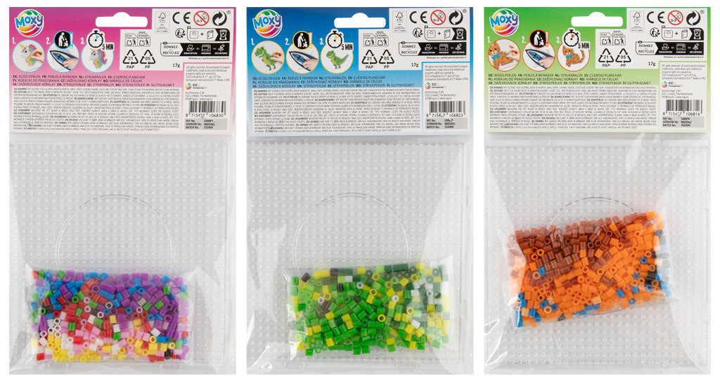 Vasalható gyöngykészlet, 15x15cm-es alaplappal, 3 féle (unikornis, dinoszaurusz, macska)