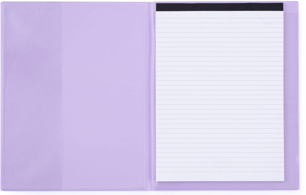 Zsebes mappa A/4, PVC, jegyzettömbbel PASTELINI, pasztell lila. Mappa mérete: 245x320x10mm. Anyaga: PVC. Belsejében 50 lapos jegyzettömb található.
