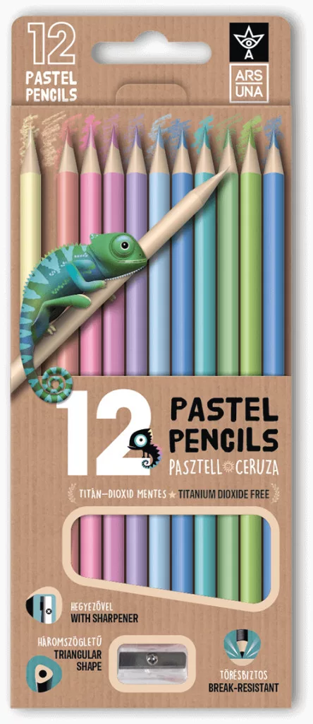 Színes ceruzakészlet 12 db-os, hegyezővel, Ars Una, háromszög test, pasztell